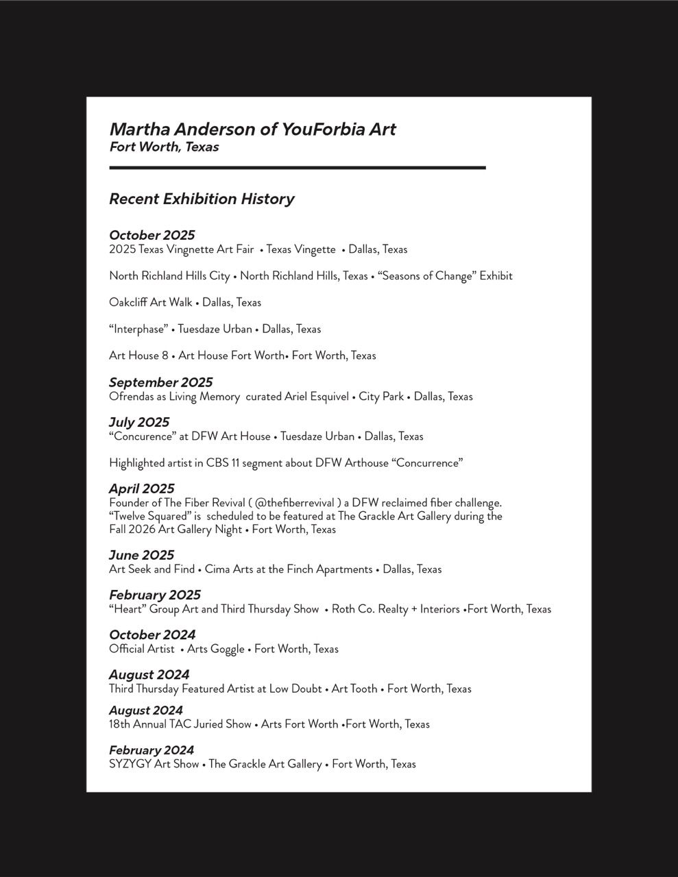 Martha Anderson is an artist whose work explores the intersection of nature, geography, and sustainability. Based in Fort Worth, Texas, Anderson has developed a unique visual language using hand tufted, reclaimed T-shirt fibers. She individually selects each fiber for its vibrant color, creating her materials from what others consider waste. Her pieces are inspired by the natural world, focusing on the interplay of shadows and textures in bold, modern topographical compositions. Through her distinctive technique, Anderson's art transforms discarded materials, giving new life to human fiber waste while also inviting viewers to reflect on the beauty and impact of excess consumption.